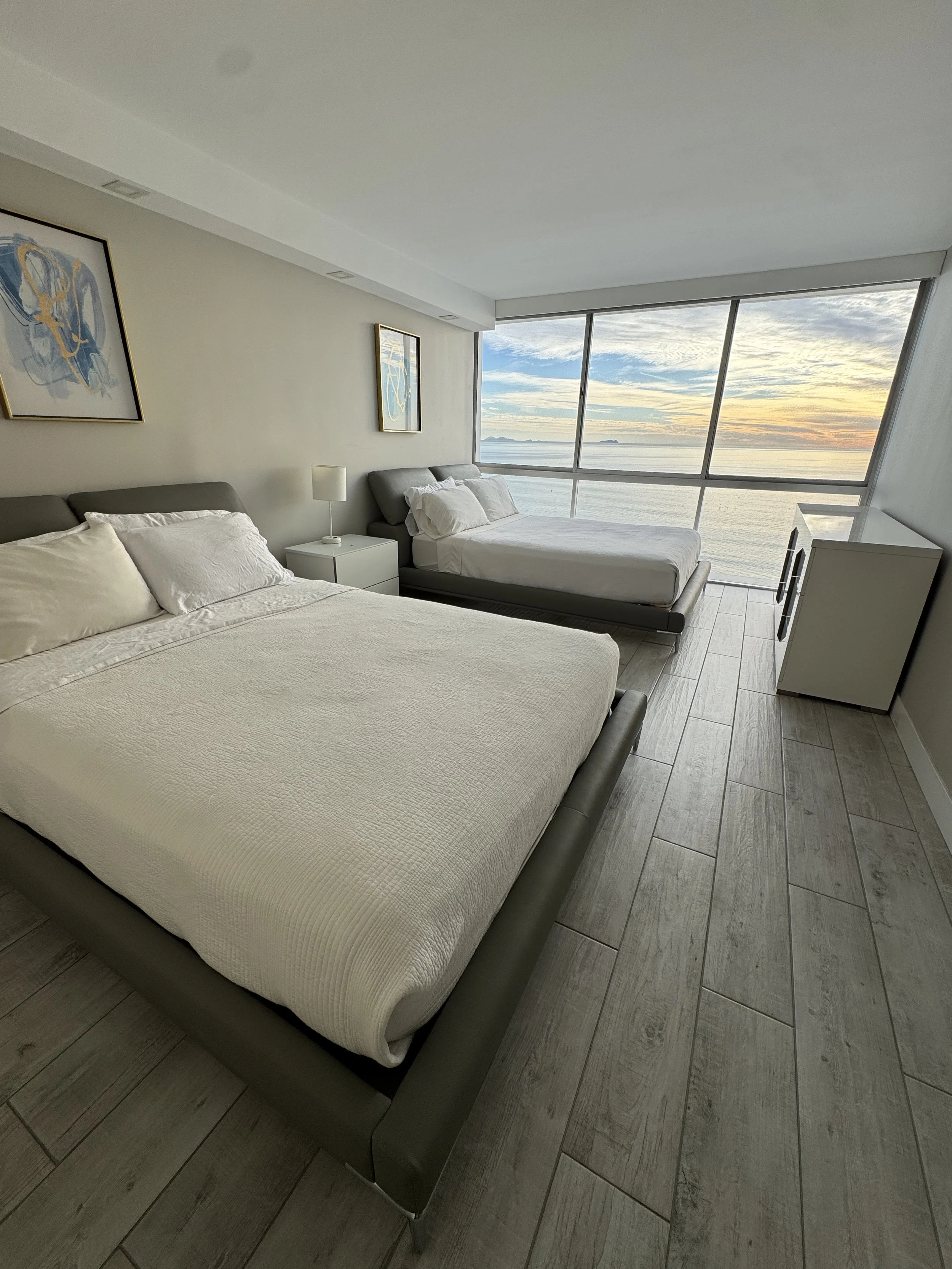 Coronado Shores is the only beachfront high-rise residential complex in all of California — and our two residences are right in the heart of it. Both fully remodeled with modern finishes, ocean views from every angle, and the kind of light that only comes from waking up steps from the Pacific. A 1-bedroom and a 3-bedroom, each fully furnished and equipped. The California experience, completely turnkey. Stays of 1 to 12 months.